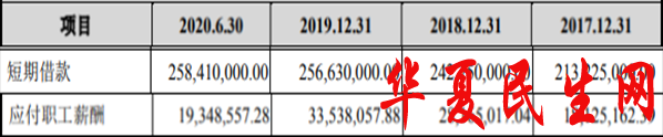 2017年至2020年上半年,公司短期借款分别为2.13亿元、2.43亿元、2.57亿元、2.58亿元。