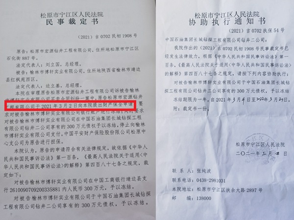 对此答复,博轩实业不服,并坚称:一个不争的事实是,宏源钻井在宁江区法院提起诉讼时起诉书上的时间是2021年2月23日(见宏源钻井的起诉书),而根据宁江区法院(2021)吉0702民初1908号民事裁定书的记载,宏源钻井向宁江区法院提出财产保全的日期是2021年3月2日,但宏源钻井进入井场强拉设备的恶性事件却发生在2月18日。