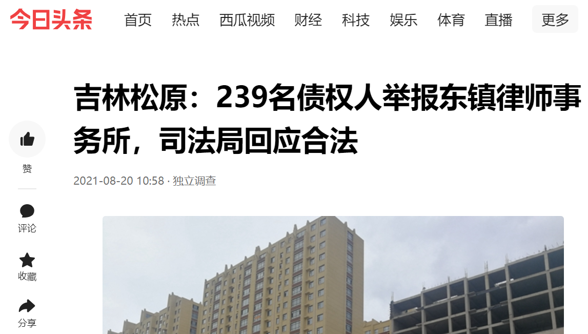 吉林松原:239名债权人举报东镇律师事务所,司法局回应合法