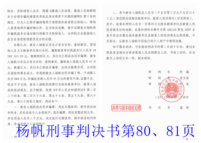 如果说民事判决耐人寻味的话,那么杨帆的刑事判决就更加意味深长了。