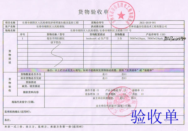 审:被告,经鉴定,原告方所提交的证据八货物验收单上加盖的公章确系你方公章,依据该验收单你方已经收到相关货物,该验收单上所显示的三台扫描仪现在是否仍在你处?