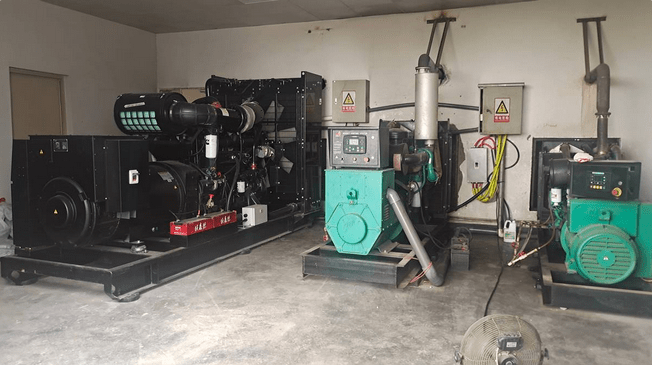 山顶发电机房的三组发电机。