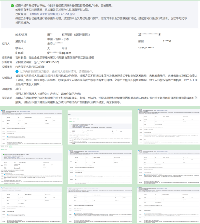 ——雇佣水军删稿掩盖真相。事件曝光后,田大原被曝通过社交平台雇佣水军,批量举报、投诉相关媒体报道,并提供造谣内容施压平台删除文章。多张网络后台截图显示,大量账号集中投诉稿件 “内容不实”,试图封锁舆论。