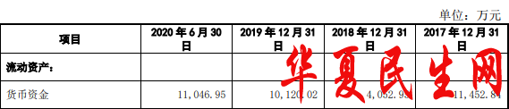 2017年至2020年上半年,公司货币资金分别为1.15亿元、4052.95万元、1.01亿元、1.10亿元。