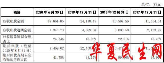 报告期各期末,福立旺应收账款余额分别为1.16亿元、1.35亿元、2.41亿元、1.79亿元,2017年末~2019年末应收账款账面余额占营业收入比例分别为42.76%、46.38%、54.40%。