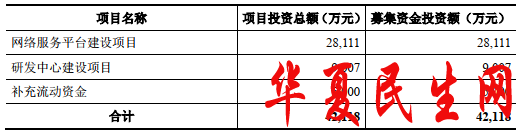 南凌科技最终募集资金比原计划多1.07亿元。南凌科技于12月7日披露的招股说明书显示,拟募集资金4.21亿元,其中,2.81亿元用于网络服务平台建设项目,9007万元用于研发中心建设项目,5000万元用于补充流动资金。