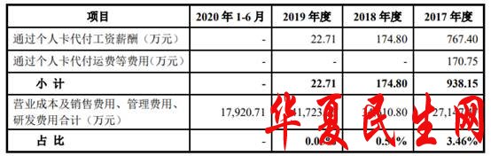 同时,宏昌科技还存在通过个人卡支付费用的情形,即2017年至2019年,宏昌科技通过关联方周慧明和公司出纳代付工资和费用分别为938.15万元、174.80万元和22.71万元。