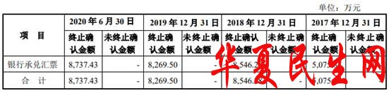 2017年至2020年上半年各期末,公司己背书或贴现且未到期的银行承兑汇票金额分别为5075.84万元、8546.28万元、8269.50万元、8737.43万元,均已终止确认。