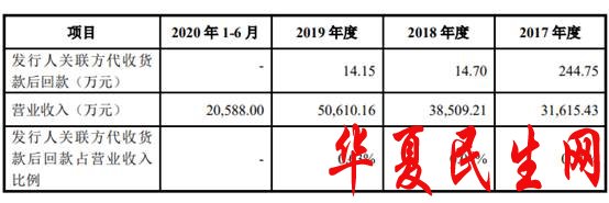 第三方回款是指实控人周慧明代公司收取货款,2017年、2018年和2019年金额分别为244.75万元、14.70万元和14.15万元。