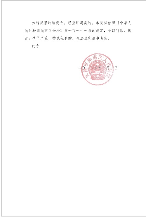 值得注意的是,11月2日津南区人民法院向何庄子农产品批发市场、冯某下达《限制消费令》,上述二公司/人成为“老赖”。检索判决书后获悉,被列为“老赖”是由于拖欠上述“违建危楼”的工程款。