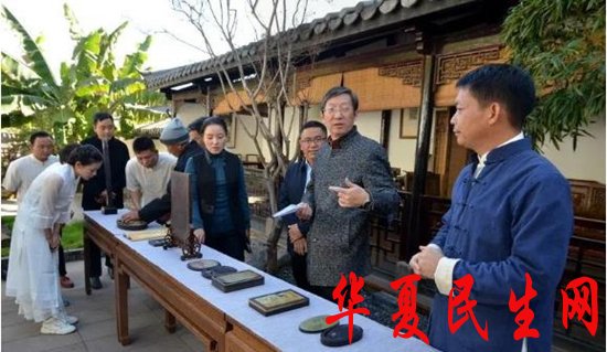 山东淄砚复兴传承人、古砚鉴赏家谭峰在玉龙雪山叩拜曹加勇大师门庭
