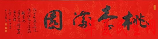中国工艺美术大师张庆明“桃李满园”书法——张庆明暨广东省工艺美术大师罗建泉、黄超洪同贺曹加勇大师收徒