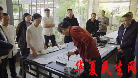 网络拜师收徒仪式结束后,在攀枝花的弟子向师父曹加勇和攀枝花市(区)领导、见证人展示了苴却砚雕作品,师徒同台论道,进行了精彩纷呈的砚雕技艺研讨。出席拜师收徒仪式的书画艺术家,现场挥笔书法作画。