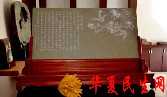 曹加勇大师肇庆端砚收徒见证人梁振华和端砚拜师弟子黄铭麟、钟子荣制作的《杏坛砚芳赋》和《杏坛砚芳识》纪念砚屏。