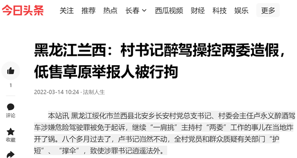 黑龙江兰西:村书记醉驾操控两委造假,低售草原举报人被行拘