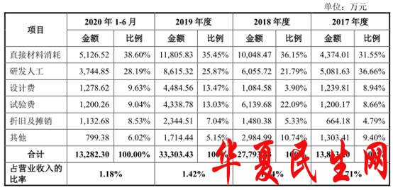 公司的研发费用主要包括直接材料消耗、研发人工等。其中,直接材料消耗费用分别为4374.01万元、1.00亿元、1.18亿元、5126.52万元;研发人工费用分别为5081.63万元、6055.72万元、8615.32万元、3744.85万元。