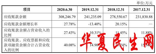 2017年至2020630日,中集车辆应收账款账面余额分别为23.18亿元、27.86亿元、24.12亿元、30.82亿元,占营业收入的比例分别为11.88%11.45%10.31%27.43%,增长率分别为20.15%-13.40%27.78%