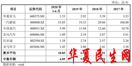 2017年至2020630日,中集车辆应收账款账面余额分别为23.18亿元、27.86亿元、24.12亿元、30.82亿元,占营业收入的比例分别为11.88%11.45%10.31%27.43%,增长率分别为20.15%-13.40%27.78%,应收账款周转率先升后降,分别为8.299.539.004.09,同行业可比公司的平均应收账款周转率31.058.916.9510.85