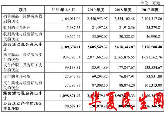 报告期内,公司经营活动产生的现金流量净额分别为17.63亿元、10.85亿元、19.09亿元、9.05亿元。其中,销售商品、提供劳务收到的现金分别为210.43亿元、255.41亿元、255.10亿元、116.40亿元。