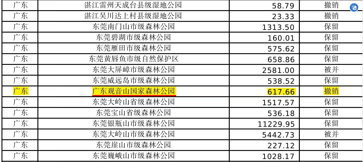 根据国家林业和草原局2024年10月15日公布的《关于全国自然保护地整合优化调整情况的公示》,观音山国家森林公园被列入撤销名录,且是整体调出。这一决定对于观音山而言,无疑是一个沉重的打击。公园方面迅速向国家林业和草原局提交了紧急反馈函,恳请继续保留“广东观音山国家森林公园”的设置。