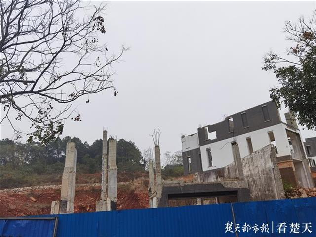 8日,楚天都市报记者在小区看到,业主反映的这6栋别墅位于该小区二期半山墅C区,周围围起围挡,已经被拆除的别墅有两栋,其中一栋地上三层框架还在,另一栋还有地下室。两栋别墅占地面积有约1500平方米。别墅背后就是甲宝山,部分山体被挖开形成一个平台,别墅被拆后的建筑垃圾铺在平台上。别墅拆除工地上并无工人在施工。