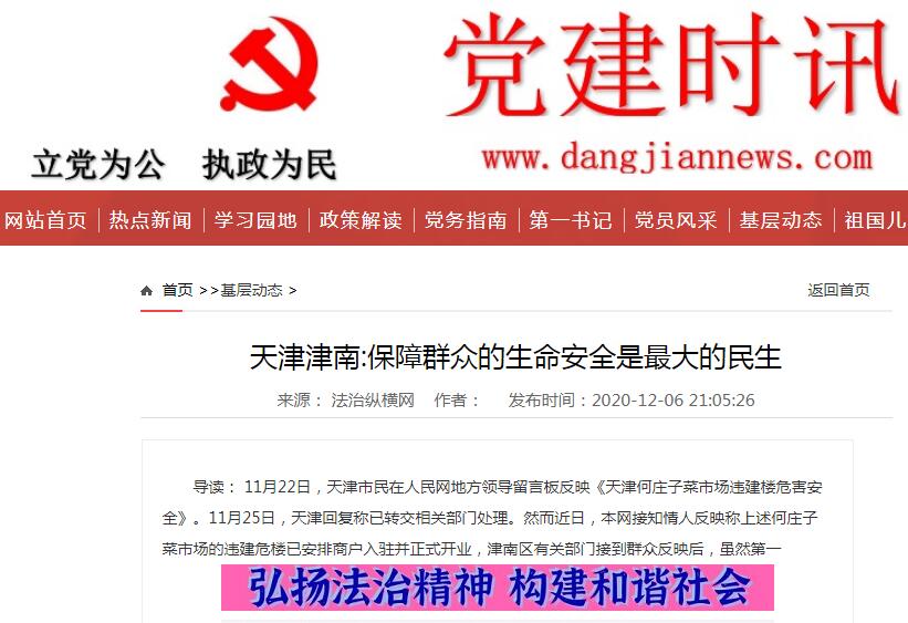 然而,近日有知情人反映,何庄子菜市场已于12月3日安排商户入驻上述“违建危楼”,并正式营业,知情人已向津南区、双港镇两级党政机关高层领导反映。
