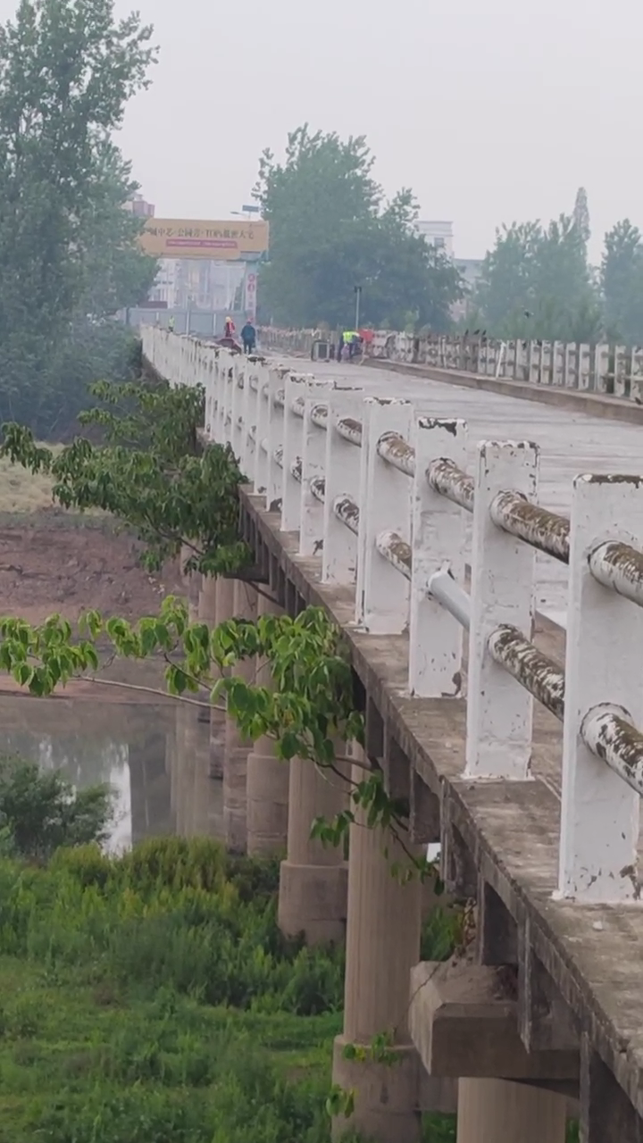 知情人发来的影像资料显示大桥两端被蓝色铁皮封堵,写有“大桥施工、禁止通行”字样。在不远处竖着的一块红色的牌子上有绕行路线的提示。在影像资料中能够很明显的看到在大桥上有三五个头戴安全帽的工人在施工作业,整个桥面的路面已经清理完成。
