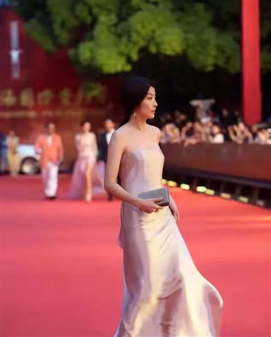 2026年3月7日,陈慧琳穿着一身浅粉紫色缎面抹胸裙走上红毯。 裙子贴身的设计,把她上半身的线条勾勒得一清二楚。