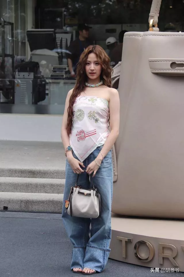 复古印花裹胸本身就挑人,搭配拖地牛仔裤,再加上显乱的羊毛卷,几个雷点凑在一起,再好看的五官也救不回来。