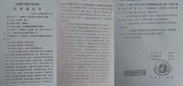 与此同时,2013年4月26日,农安县法院执行局做出(2004)吉农执字第951-2号执行裁定书,终结农安县法院(2004)吉农民执字第951号执行案件的执行,又做出(2004)农执字第951-1号执行裁定书,撤销了本院(2004)吉农民初字第951号民事裁定,理由是“无可执行回转的内容”,“没有生效的法律文书对此部分土地进行过处分,且对土地确权不属于法院管辖事项”。