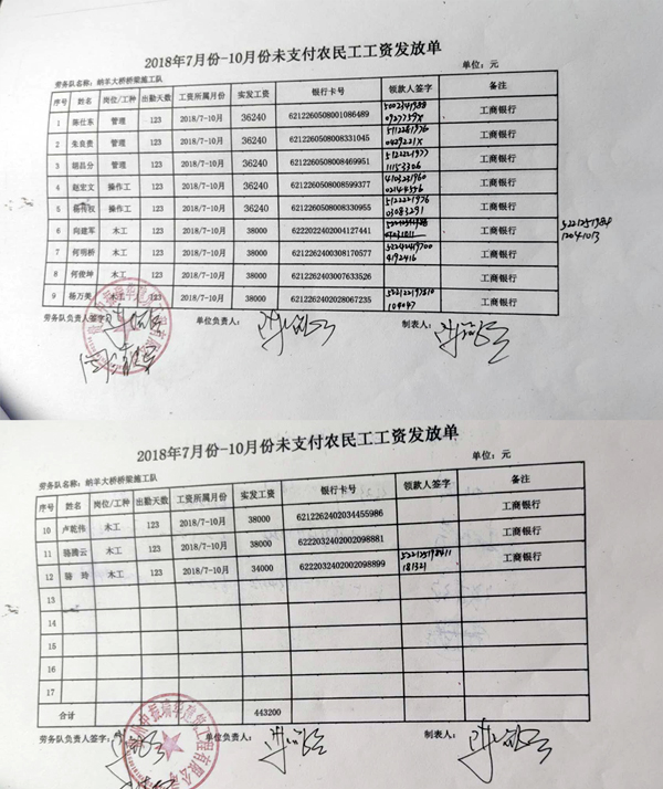 近日,有农民工代表重庆籍的陈仕东、贵州籍的向建军的反映,他们于2017年在贵州省望谟县打尖乡修建紫望高速的纳羊大桥做边坡和孔桩施工活,紫望高速已于2020年全线贯通,但是到现在还有拖欠他们的40余万农民工工资没有支付。虽然多次求助望谟县劳动保障部门,但是拖欠的这些农民工工资一直没有落实到位。
